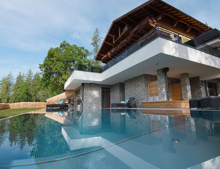 Genießen Sie das Bergpanorama und das Element Wasser in unserem großen Infinitypool.